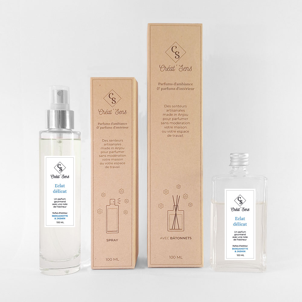 Disponible en brume ou diffuseur de 100 ml, ce parfum d’ambiance aux accents élégants peut être utilisé dans les espaces de vie let de travail pour y créer une ambiance à la fois raffinée et pétillante.
